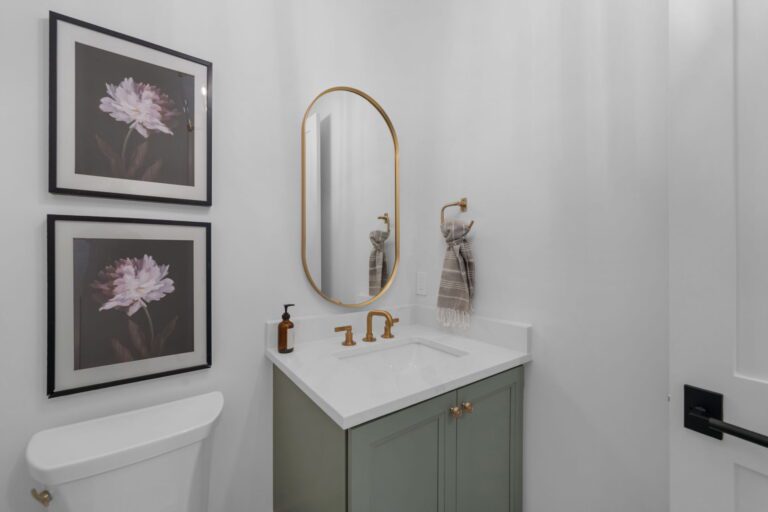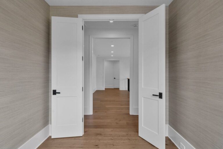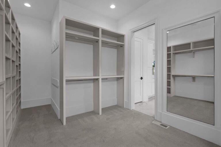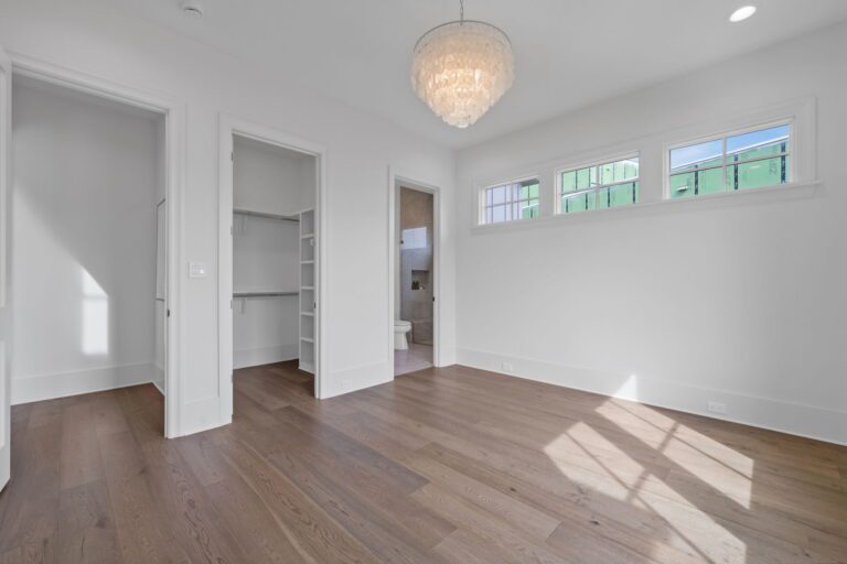 - Luxurious first-floor owner’s retreat with a vaulted ceiling, spa-inspired bath featuring a zero-entry shower, free-standing tub, and spacious dressing room
