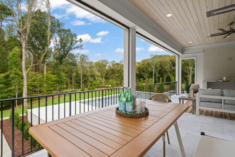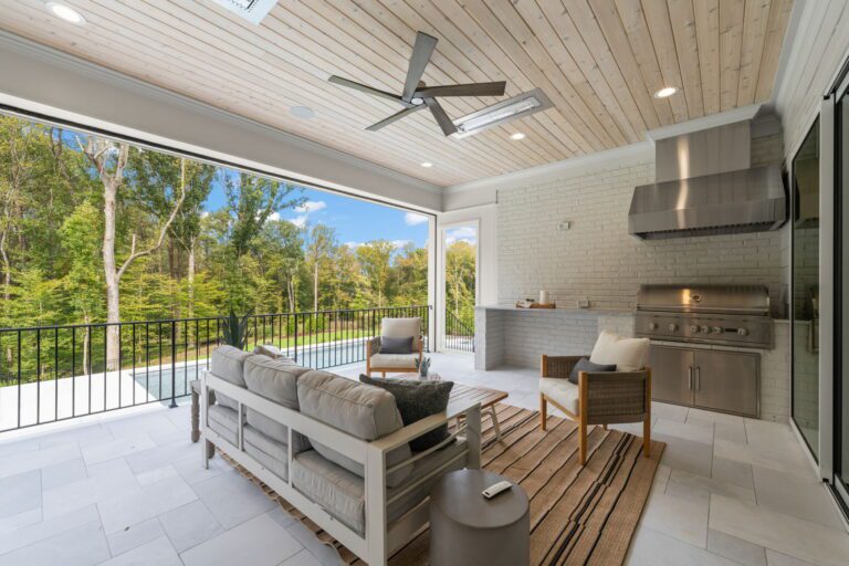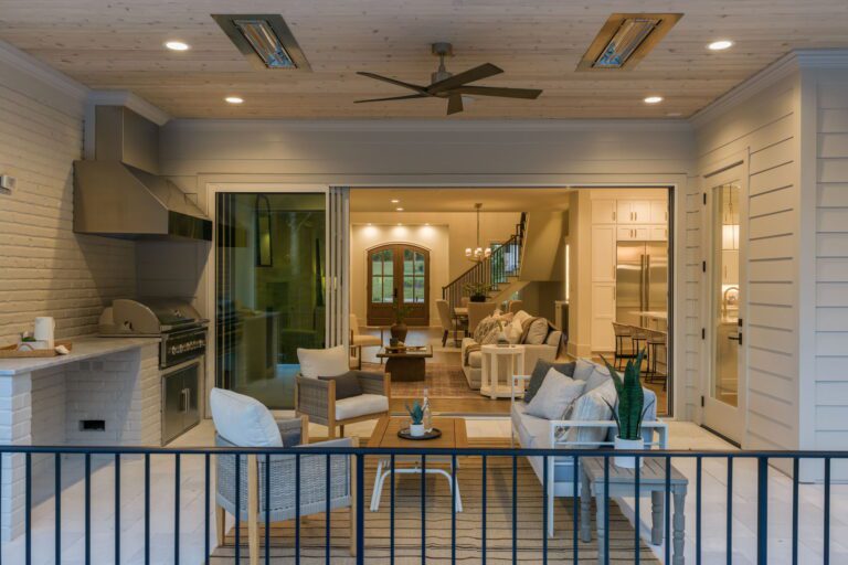 - Spacious rear covered porch with Phantom screens, heaters, and a built-in grilling area