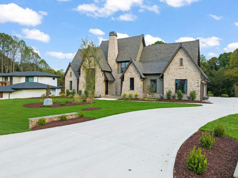 - Stunning modern European-inspired estate with brick exterior and entry courtyard