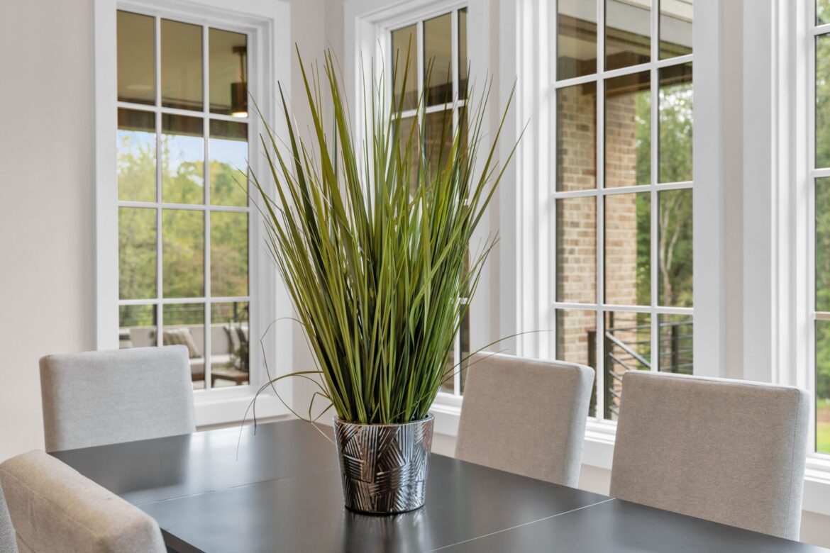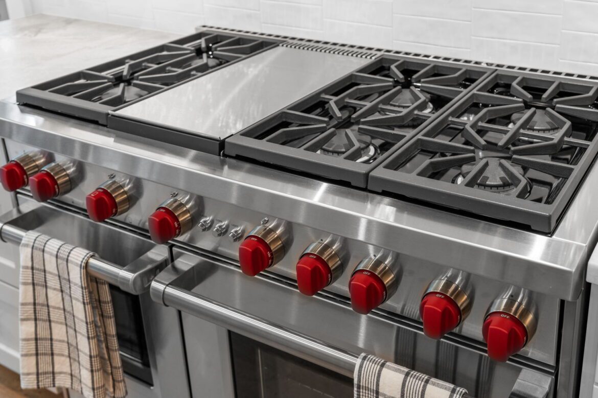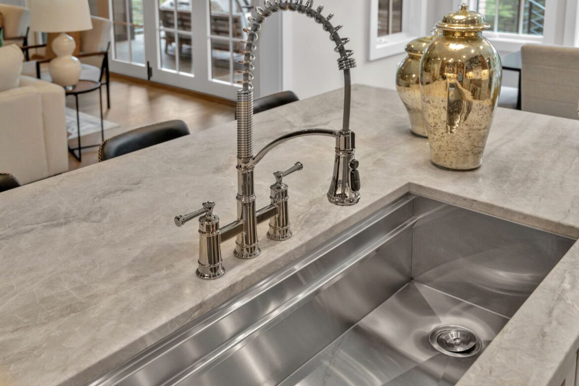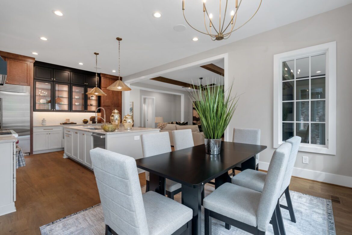 - Chef’s kitchen with a large island and designer appliances, opening to the great room and breakfast area